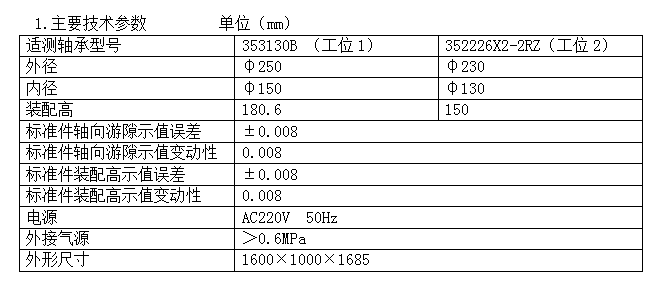 X794S軸承軸向游隙、裝配高測量儀是采用比較法測量,雙測量工位,用于353130B(工位1)及352226X2-2RZ(工位2)型軸承軸向游隙、裝配高的測量。高精度的氣動夾緊旋轉機構定位準確,采用手動測量方式,重復測量穩定性準確,電氣聯控,實時顯示測量數據。適用于軸承生產廠家及鐵路車輛段貨車軸承的成品檢驗和維修檢測使用。